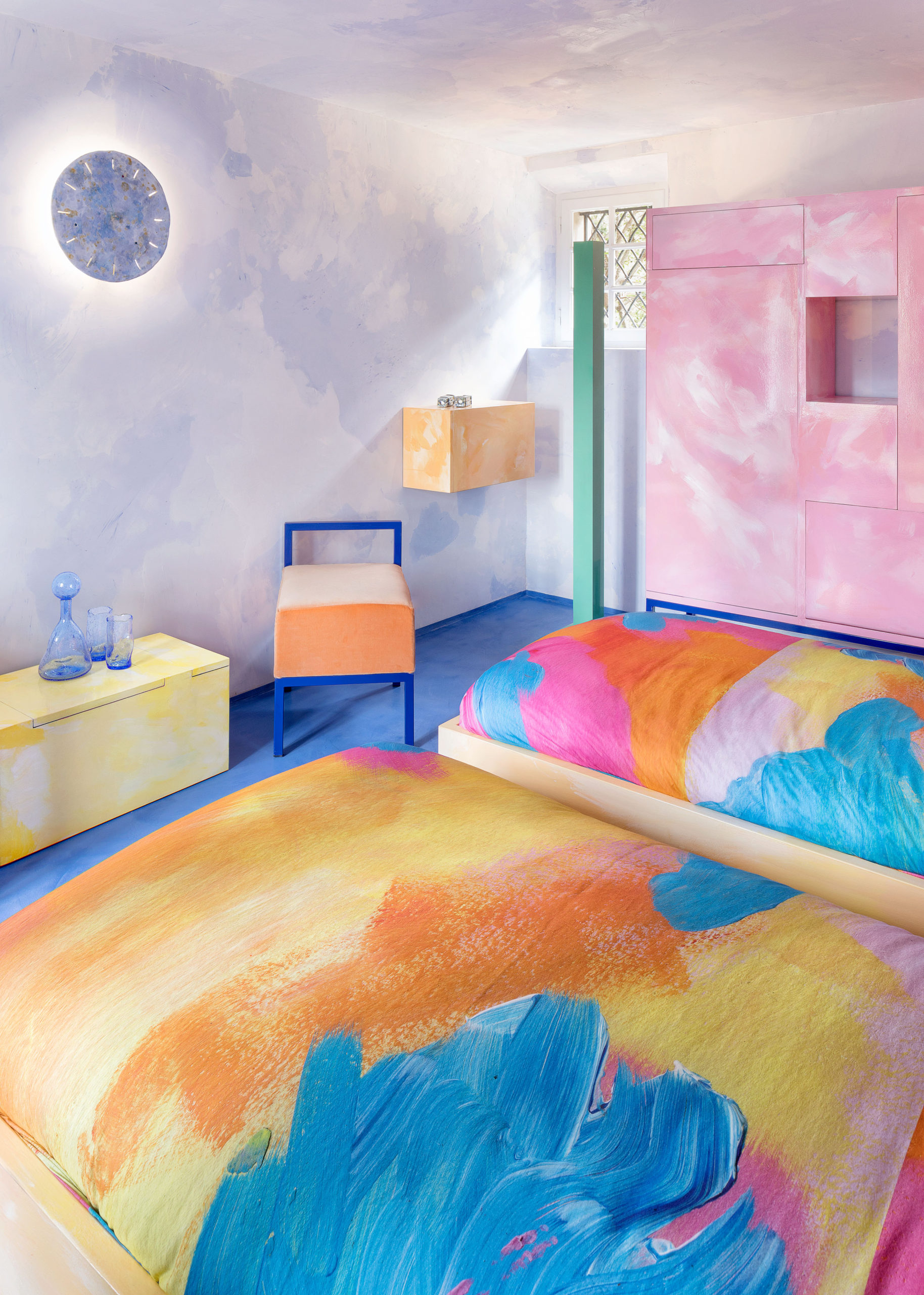 Each environment was entrusted to a young design practitioner: Joachim Jirou-Najou, Paul Brissonet + Alexandre Benjamin Navet, Superpoly, Studio Quetzal, Zanellato/Bortotto. Each design studio was asked to devise furniture and decoration projects involving the whole room (including the smallest details: from the bed to the alarm clock, the lanterns, sheets, glasswars and carafes), and taking inspiration from the colors, crafts, and traditions of the surrounding region. From Monaco to Marseille, passing through Lion, 5Rooms connected artists and designers with local craftsmen, and aimed to become a future center for workshops, residences, and research.