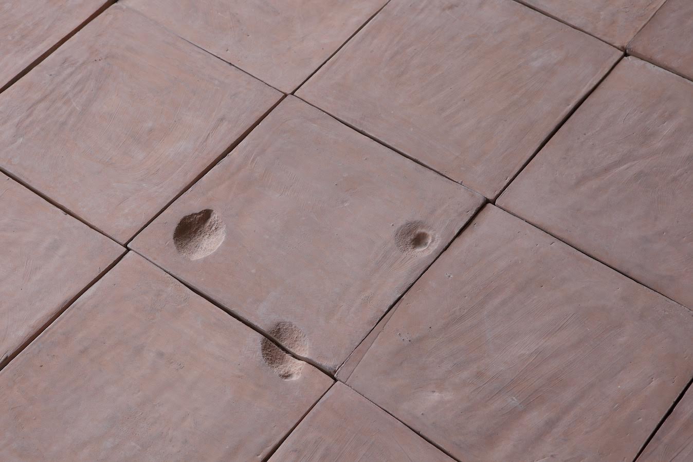 Notte di San Lorenzo brought together a part of the lemon grove and the area inside one of the halls of Palazzo Butera. The two areas—one imaginary, the other real—overlapped inside a single metal landscape in a dialogue on the circumstances connecting time and space via gravity. The traces of fruit fallen from the trees during the months of fruit production could be seen on the raw clay tiles. The fruit, drawn to earth either because it has ripened, because of its weight or because of a strong gust of wind, formed a constellation representing a phase in the garden’s life cycle. The floor, like all the other decorative architectural features of Palazzo Butera, illustrated the relationship between the palazzo and the fief.